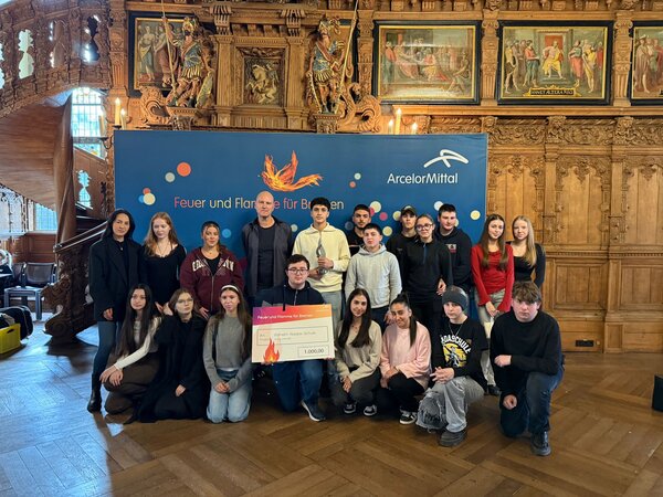 ArcelorMittal Bremen zeichnet im Rahmen der Stiftung „Feuer und Flamme für Bremen“ besondere Projekte aus dem Land Bremen aus, die über den regulären schulischen Rahmen hinausgehen. In diesem Jahr wurden insgesamt 17 Schulen für ihr besonderes Engagement geehrt. Zwei dieser Schulen erhielten bei der Preisverleihung gestern zusätzlich einen Sonderpreis in Form eines Pokals.